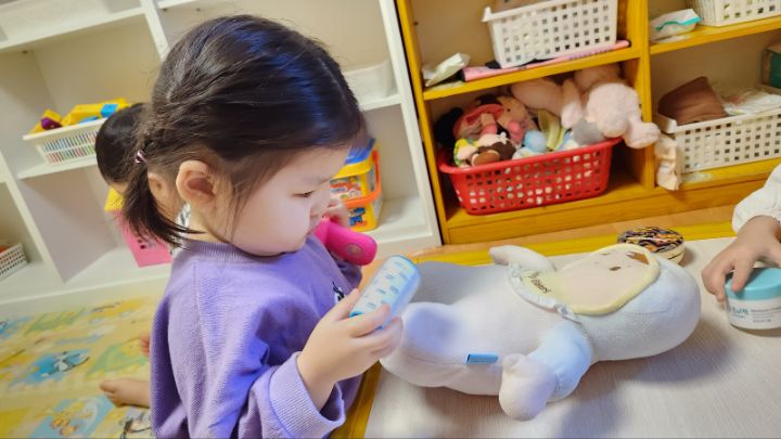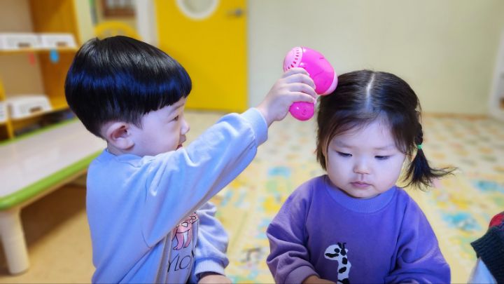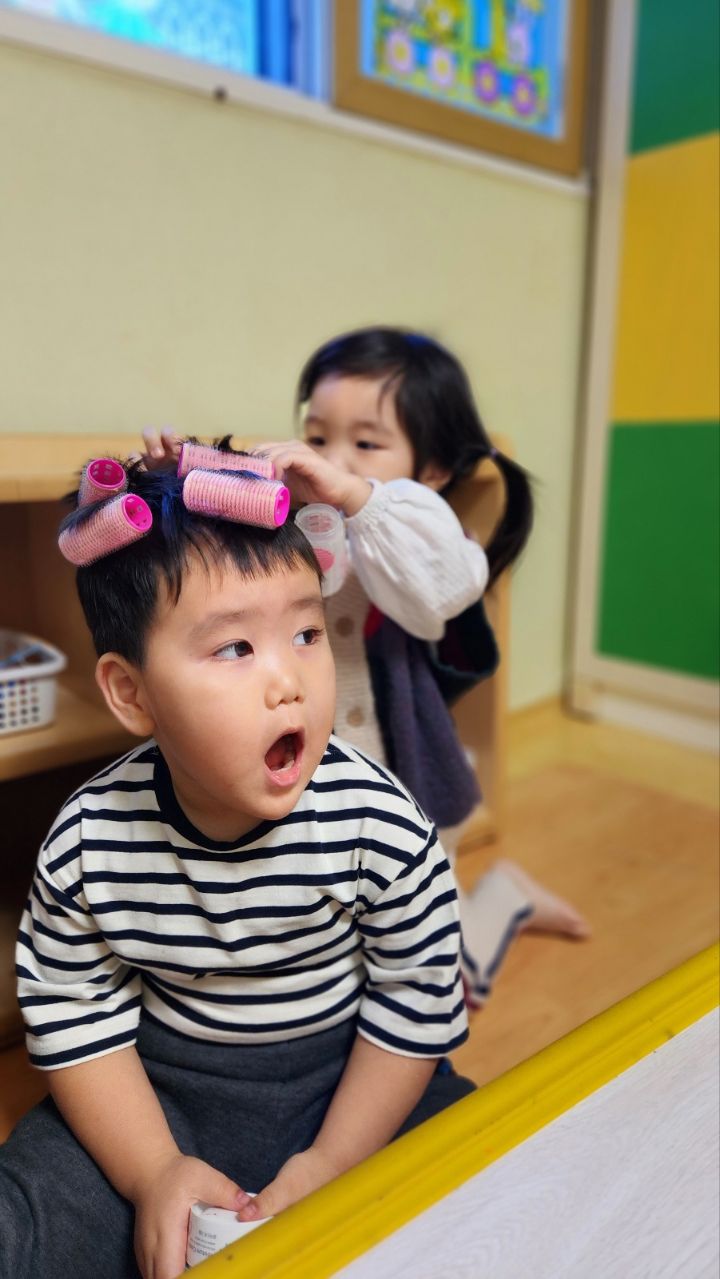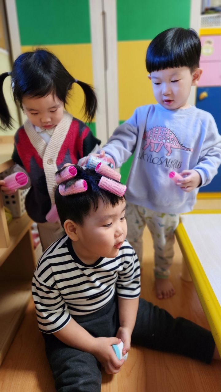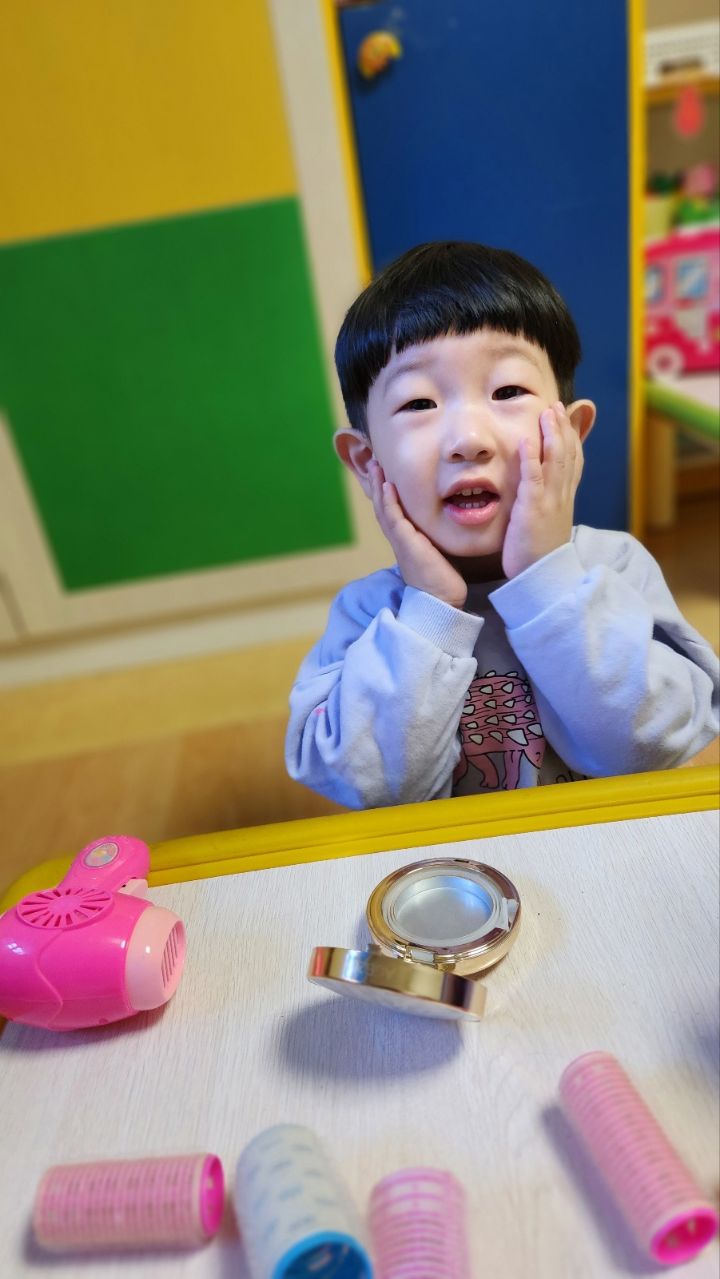 예쁜~엄마 되어볼까요~♡♡ 작성자별뜰지기|작성시간23.02.28|조회수42 목록 댓글 1 글자크기 작게가 글자크기 크게가 다음검색 현재 게시글 추가 기능 열기 북마크 공유하기 신고 센터로 신고 댓글 댓글 1 댓글쓰기 답글쓰기 댓글 리스트 작성자모모와모모 | 작성시간 23.02.28 '짜잔~머리 어때요~??' 우리 친구들과 미용놀이해 보았어요~서로 친구에게 셋팅과 드라이로 파마와 드라이를 해주겠다며 하는데 너무 귀엽더라구요~그런 친구들에게 순서를 정해 해보자고하니 알겠다며 기다려주는 모습을 보이며 손님이됬다 미용사가 됬다 번갈아가며 즐겁게 놀이해보는 우리 친구들이였네요~그리고 엄마처럼 예쁘게 화장놀이도 해보았어요~~ 댓글 전체보기