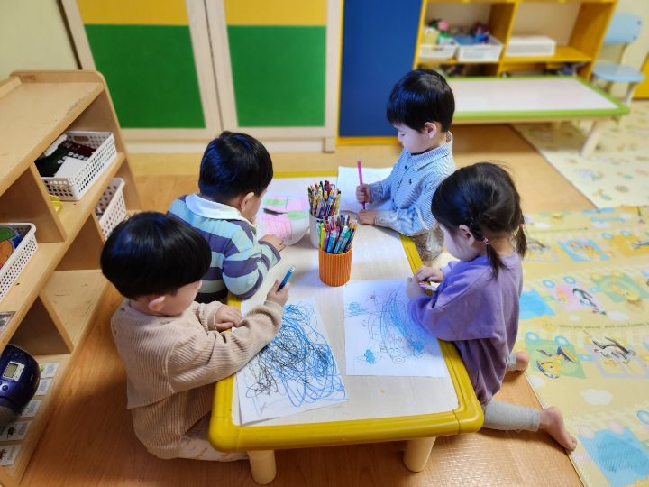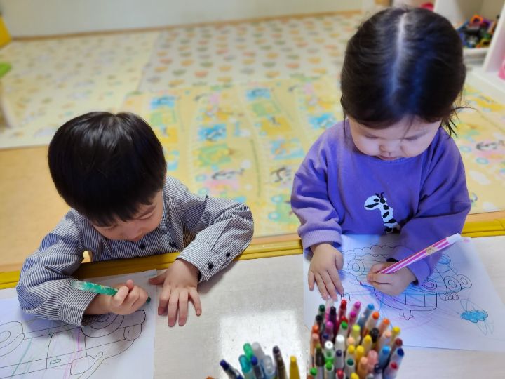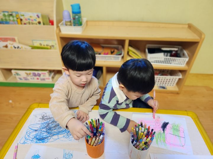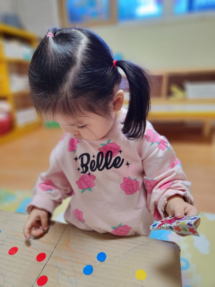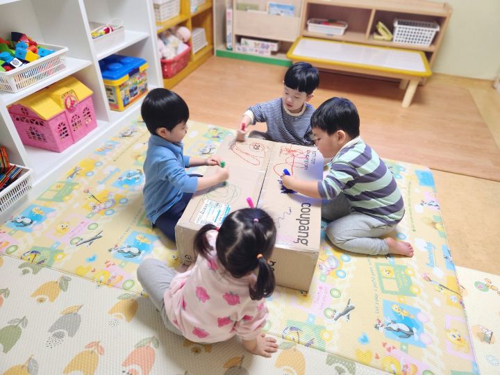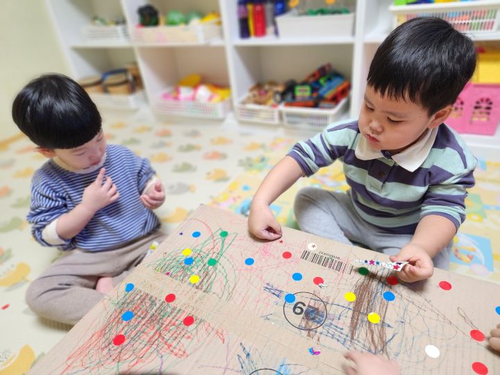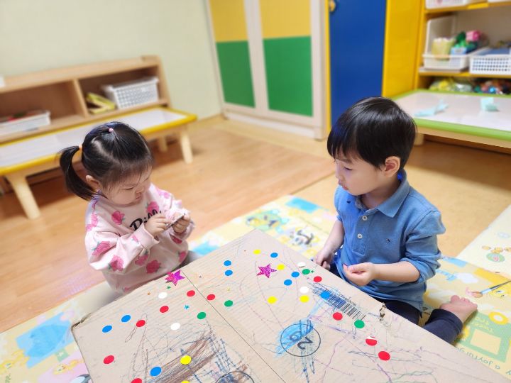 작성자모모와모모 작성시간 23.03.13 우리 친구들 상자위에 자유롭게 크레파스로 끼적이기와 알록달록 스티커를 붙여보며 활동해보았어요~ 상자를 보고선 너나할것 없이 놀이하던걸 멈추고 상자위에 신나게 끼적이기하며 놀이하는 우리 친구들이였네요~옷에 크레파스가 묻던말던 신경 쓰지않고 열심히 열정적으로 끼적이기하는데 그모습이 얼마나 웃기던지요~한참을 끼적이기하던 우리 친구들에게 스티커이야기를 하니 끼적이기하던 크레파스를 놓고 얼른 스티커를 달라고하여 주었더니 정신없이 붙이며 활동하는 우리 친구들모습들이였답니다~너무 신나게 놀이하는 우리친구들 모습이 예쁘더라구요~