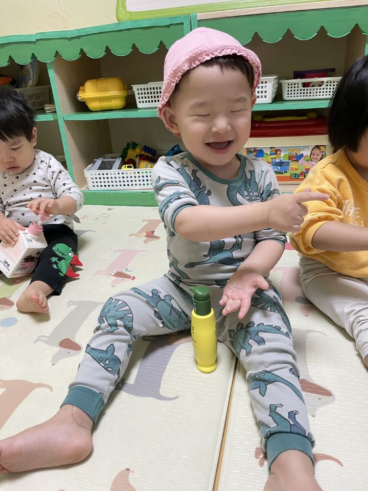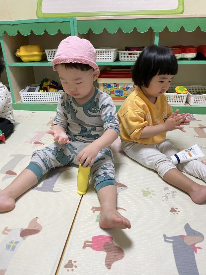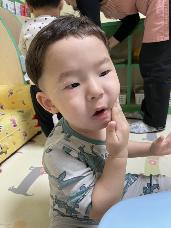 예쁜~내얼굴에 로션을 발라요~♡ 작성자별뜰지기|작성시간23.03.15|조회수21 목록 댓글 1 글자크기 작게가 글자크기 크게가 다음검색 현재 게시글 추가 기능 열기 북마크 공유하기 신고 센터로 신고 댓글 댓글 1 댓글쓰기 답글쓰기 댓글 리스트 작성자노수희 | 작성시간 23.03.15 에쁜 내 얼굴에 로션을 톡톡~~발라보며 놀이를 했어요. 우리 귀요미들은 자신의 로션을 찾아보고 꾹~짜서 로션 향도 맡아보고 얼굴과 팔, 다리에 발라보았어요. 미끌미끌한 로션을 발라보고 친구의 얼굴을 보며 활짝 웃어주는 귀요미들입니다. 🧴 댓글 전체보기