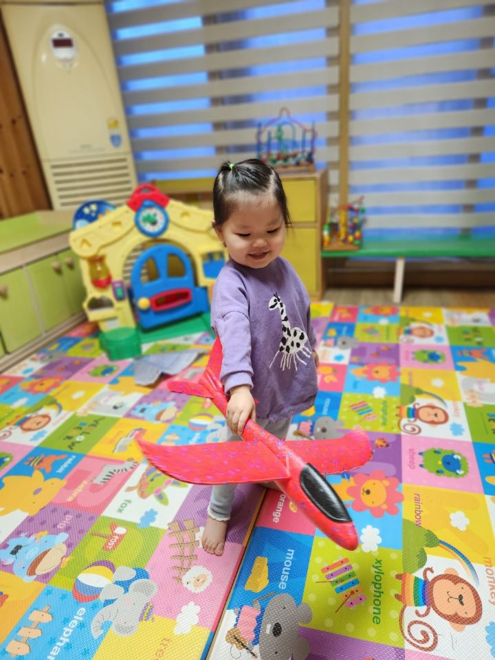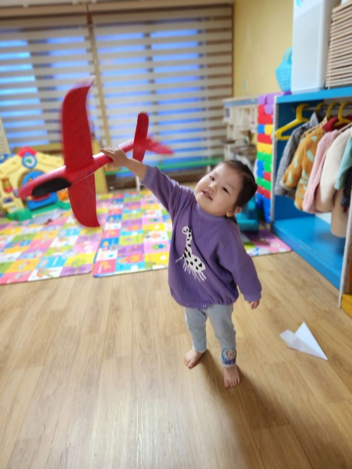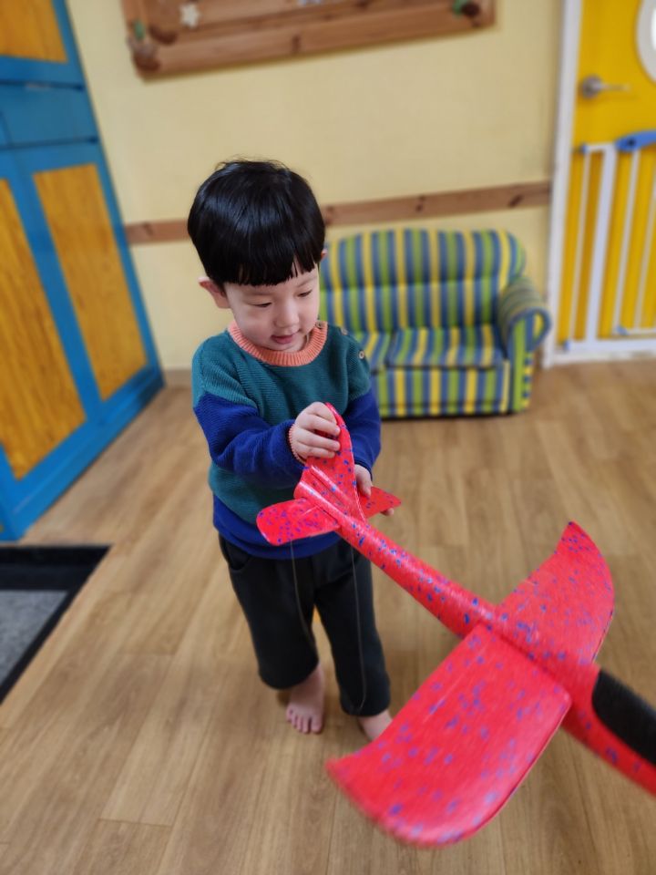 작성자모모와모모 작성시간 23.03.27 오늘 우리 친구들에게 종이 비행기를 만들어 훨훨~날려 볼수 있도록해주었어요~ 종이비행기에 관심갖고 만드는 과정을 보고관심을 갖고 놀이하더니 잘 날지 않으니 조금 흥미를 잃은듯 하여 모형 비행기를 건네자 아주큰 관심과 흥미폭파하는 모습을하며 즐겁게 놀이하는 우리 친구들 모습이였답니다~그러면서 종이 비행기로도 신나게 놀이하였네요~