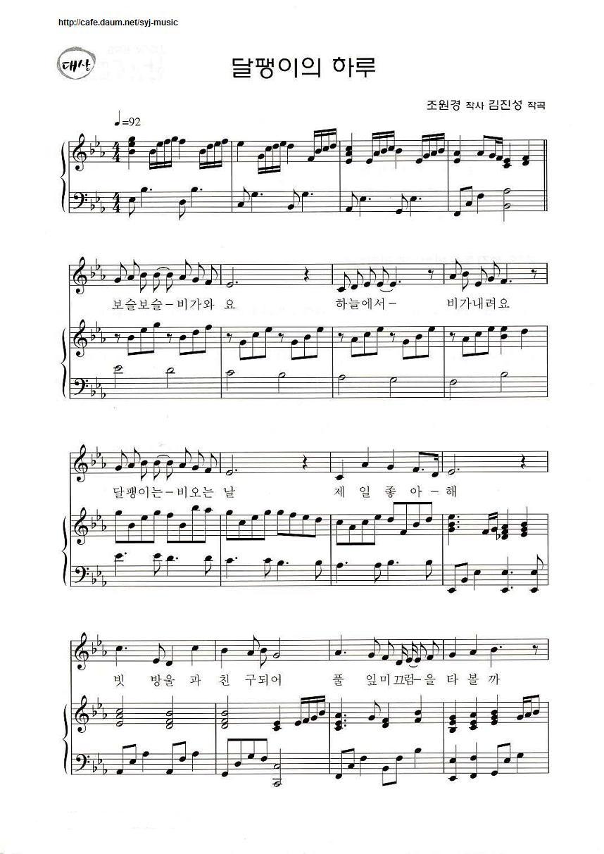 작성자분홍공주 작성자 본인 여부 작성자 작성시간 09.08.24 오늘 배운 새노래 달팽이의 하루입니다. 비가 오면 어디선가 나타나는 달팽이를 예쁘게 표현한 노래랍니다.