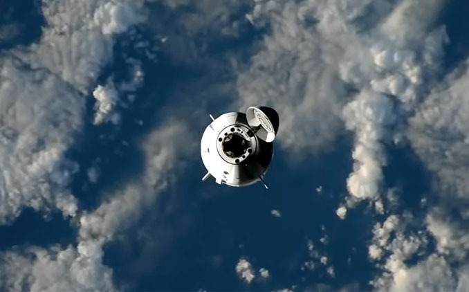 크루 드래곤 인데버가 2024년 3월 5일 NASA 우주비행사 3명과 러시아 우주비행사 1명을 태우고 국제우주정거장에 접근하고 있다. 이미지: NASA TV.