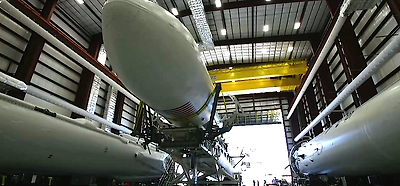 All three first stage cores for the Falcon Heavy are at the Florida spaceport for final processing. 팔콘 헤비 (Falcon Heavy)의 첫 3 단계 코어는 최종 처리를 위해 플로리다 우주 비행장에 있습니다. The side boosters were previously flown on Falcon 9 launches, and the center core is fresh from SpaceX's factory in Hawthorne, California. 사이드 부스터는 이전에 Falcon 9 출시에 사용되었으며, Center Core는 캘리포니아 주 호손 (Hawthorne)에 소재한 SpaceX의 공장에서 새로 출시되었습니다.
