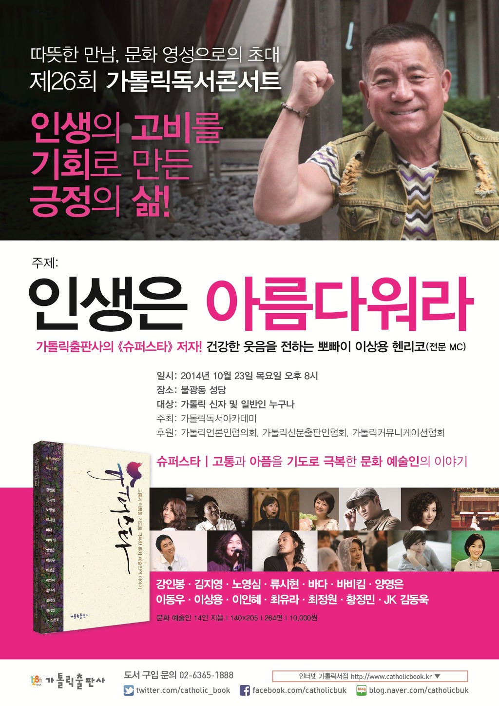 가톨릭독서아카데미(회장 김정동·지도 김민수 신부)는 23일 오후 8시 서울 불광동성당에서 뽀빠이 이상용 선생을 초청해 ‘ 인생은 아름다워라’를 주제로 ‘제26회 가톨릭독서콘서트’를 연다.