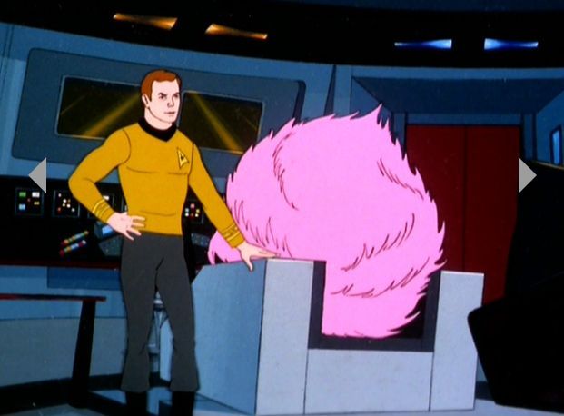 (TAS More Trbbles, More Troubles의 한장면 트리블이 떡 하니 커크의 캡틴 시트를 차지했네요. 애니메이션 내용이 급 궁금해지는 한