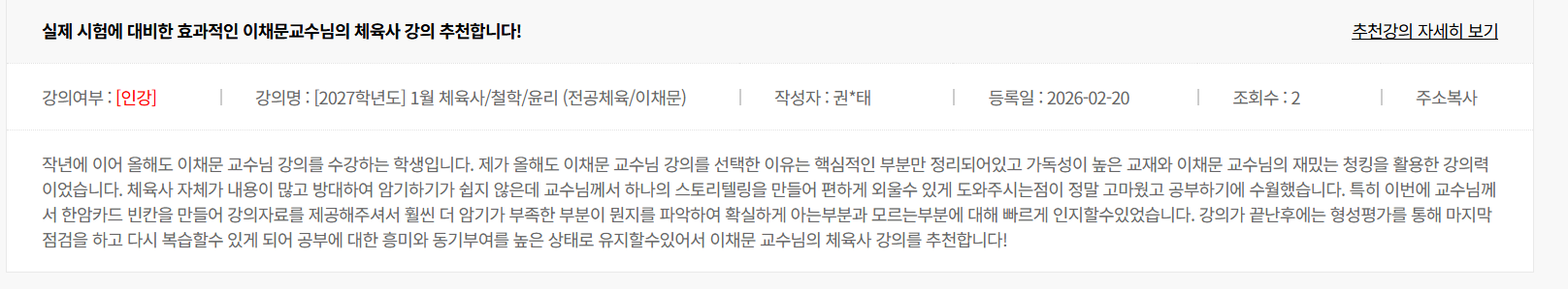 실제 시험에 대비한 효과적인 이채문교수님의 체육사 강의 추천합니다!추천강의 자세히 보기