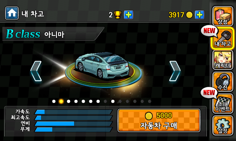 아래는 B class 아니마 차종에 대한 미션을 수행하여 잠금해제된 상태이다.