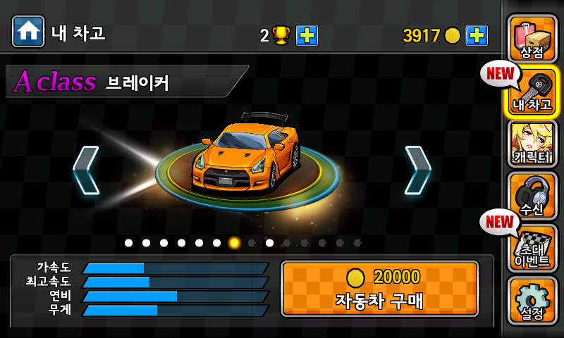 아래는 A class 브레이커 차종에 대한 미션을 수행하여 잠금해제된 상태이다.