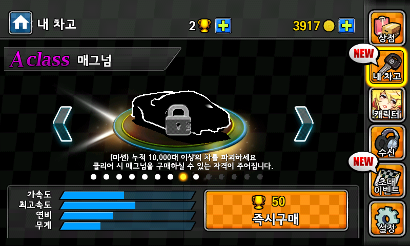 아래 화면은 A class 매그넘 차종이 잠겨있는 상태다.
