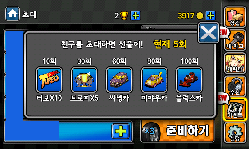 초대 30회 하면 트로피 5개 얻을 수 있다고 한다.