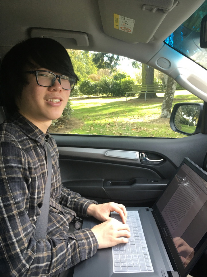 혁준이는 혹시라도 몰라서 컴퓨터를 가지고와서, 크라이스트처치가는 길에 제 옆자리에 앉아서 제출해야할 과제도 하구요. History 과목인데, 자기 자신은 가장 높은 등급인 엑설런스로 History 과목을 통과하고 싶은데, 담당선생님은 조금더 노력이 필요하다는 이야기를 듣고, 아주 열심히 노력을 하고 있는 중인것 같습니다.
