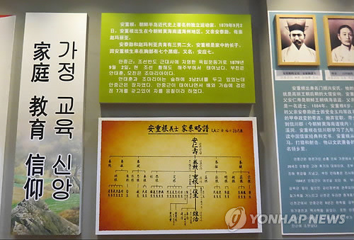 하얼빈역에 개관한 안중근 의사 기념관 내부의 전시물.