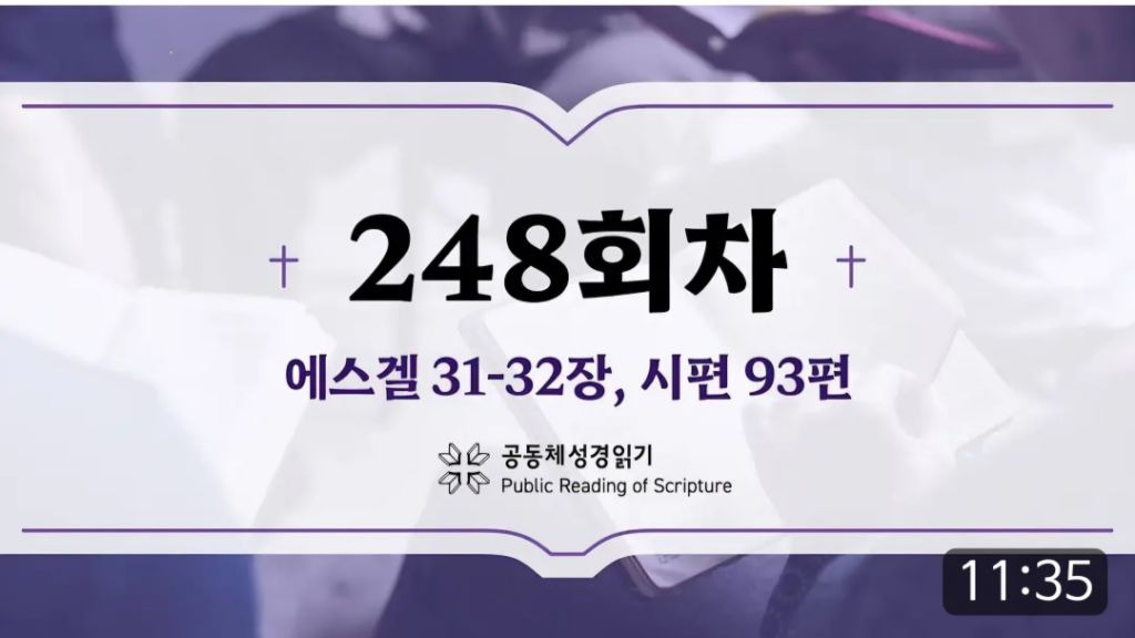공동체 성경읽기_24년 9월 4일_248일차 (겔 31-32, 시 93) 작성자스티그마|작성시간24.09.04|조회수48 목록 댓글 0 글자크기 작게가 글자크기 크게가 [365일 공동체 성경읽기_24년 9월 4일_248일차]에스겔 31-32장, 시편 93편https://youtu.be/1IjQ9vplThk 다음검색 현재 게시글 추가 기능 열기 북마크 공유하기 신고 센터로 신고 댓글 댓글 0 댓글쓰기 답글쓰기 댓글 리스트