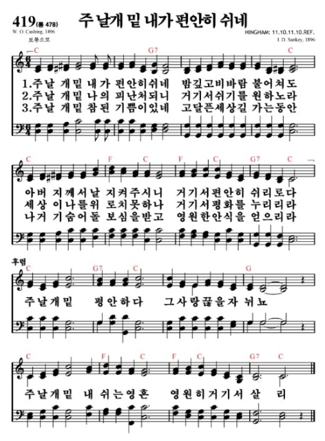 찬양곡: 419장 주 날개 밑 내가 편안히 쉬네