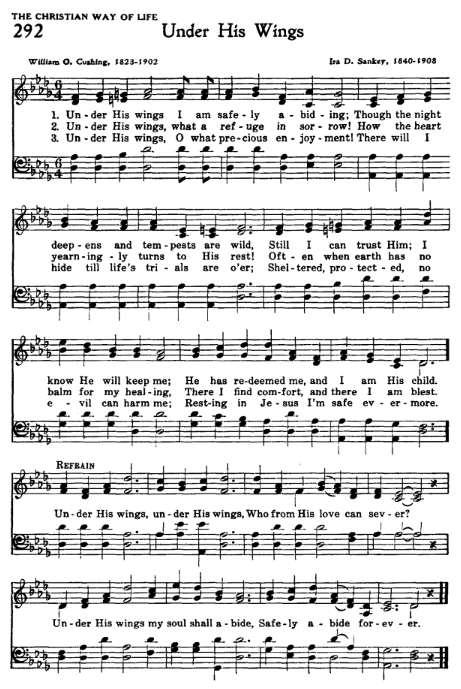 이 찬송시 ‘주 날개 밑 내가 편안히 쉬네’(Under His Wings)는 옛날 자신이 이 제목으로 설교한 것이었다.