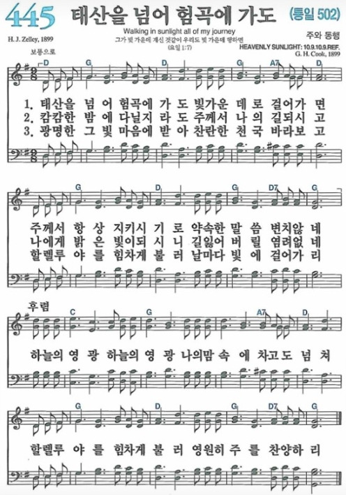 찬양곡: 445장 태산을 넘어 험곡에 가도