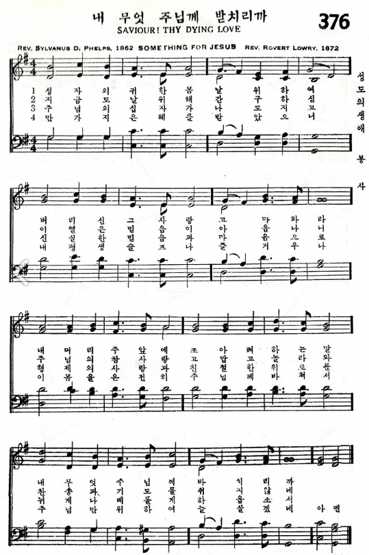 이 찬송은 1862년에 펠프스 목사가 작시해서 2년 뒤인 1864년에 <파수꾼과 반사만원경(Watchman and Reflector)>에 발표항였는데, 지금 찬송가 내용과는 다른 것으로 수록되어 제목은 <주께 드리는 것(Something for Thee)>이었습니다.