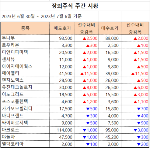 2023년 7월 6일 시황입니다.
