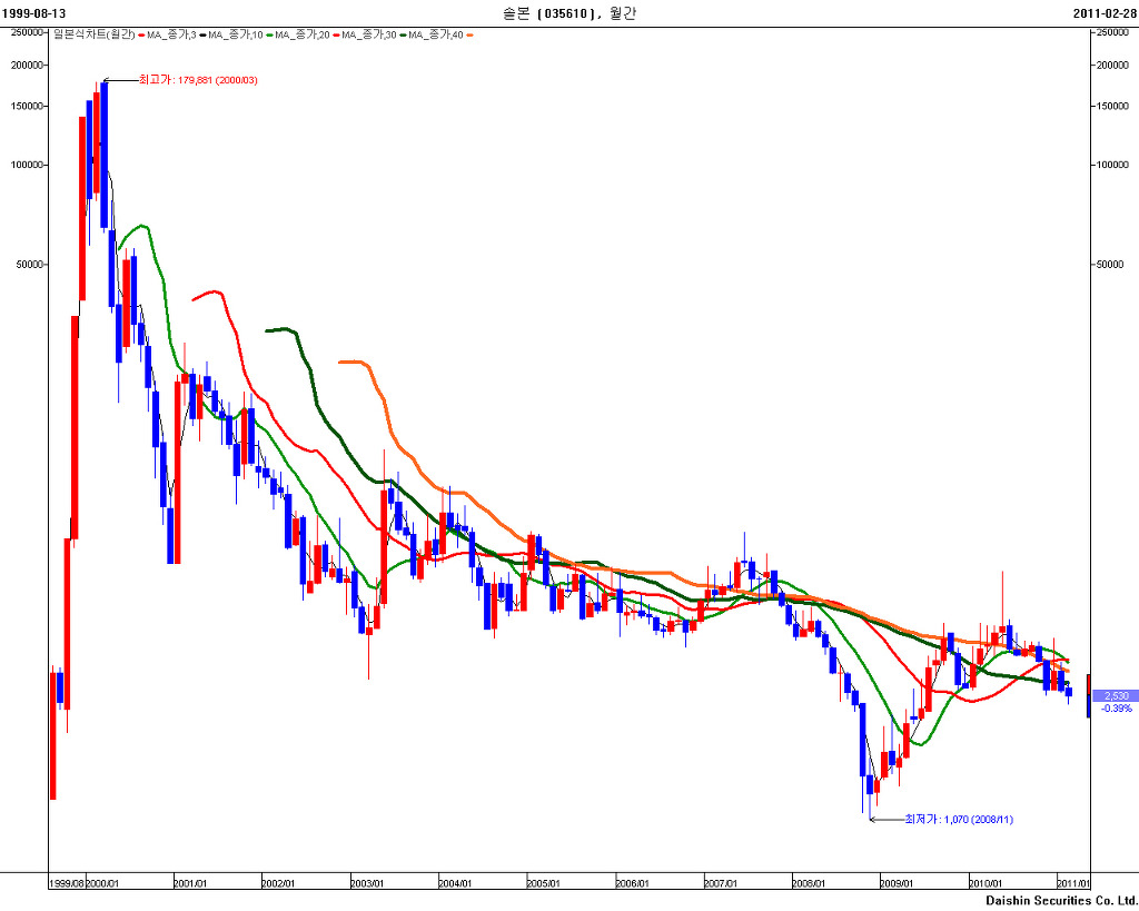 새롬기술의 당시 주가를 보면 17만9000원까지
