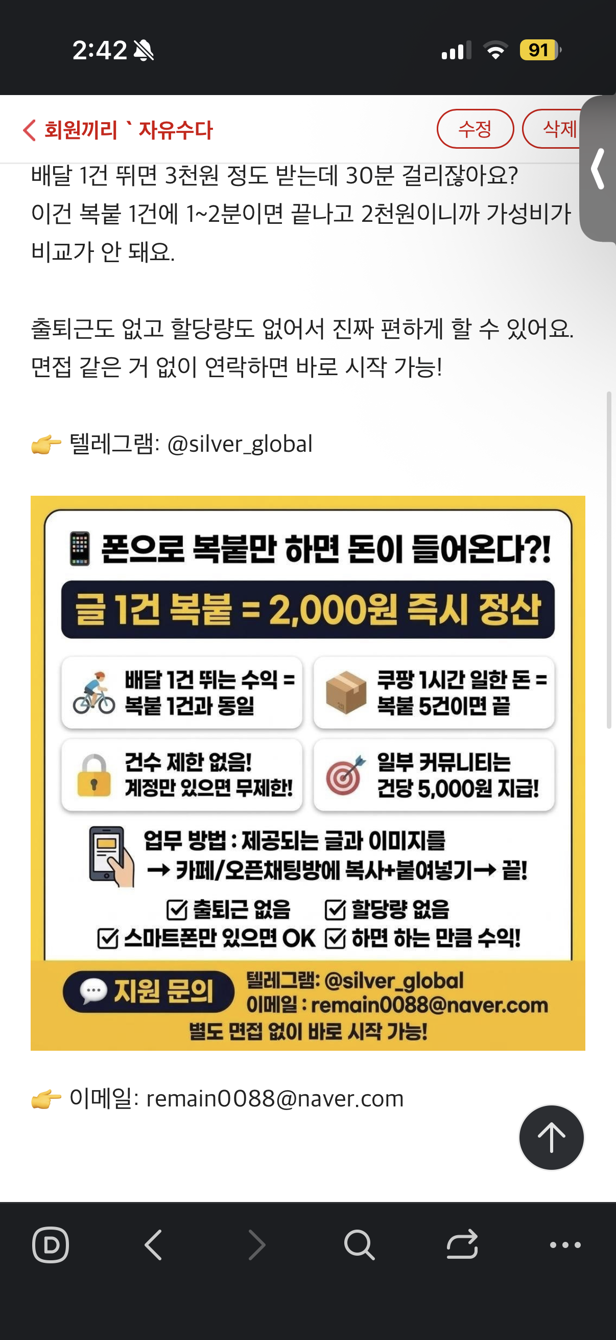 이건 복붙 1건에 1~2분이면 끝나고 2천원이니까 가성비가 비교가 안 돼요.