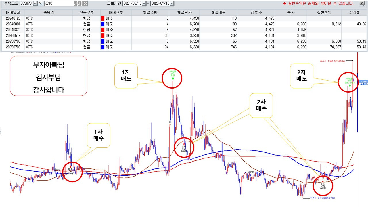 이러한 철학을 바탕으로, KCTC와의 인연을 복기해봅니다. 모든 매매의 순간에 스승님의 가르침이 녹아있었음에 다시 한번 감사한 마음을 전합니다.