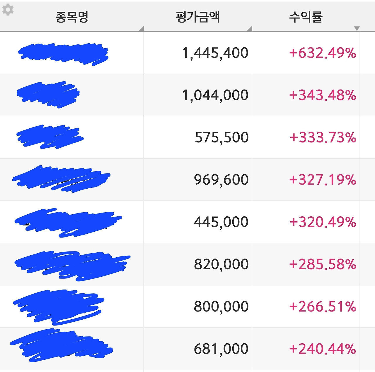 작년 말부터 정신을 차리고 많은 종목들을 정리하여 70개 정도로 압축하였다.