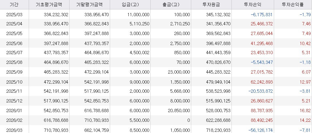 * 3월 조정 받아서 자산가치가 줄긴했지만 종목 리밸런싱으로