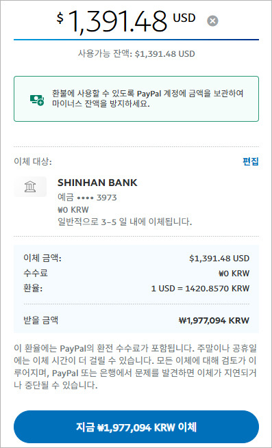 ◎판매금액: US$1,472.15 (-)원천징수액 US$80.67(5.5%) = US$1,391.48