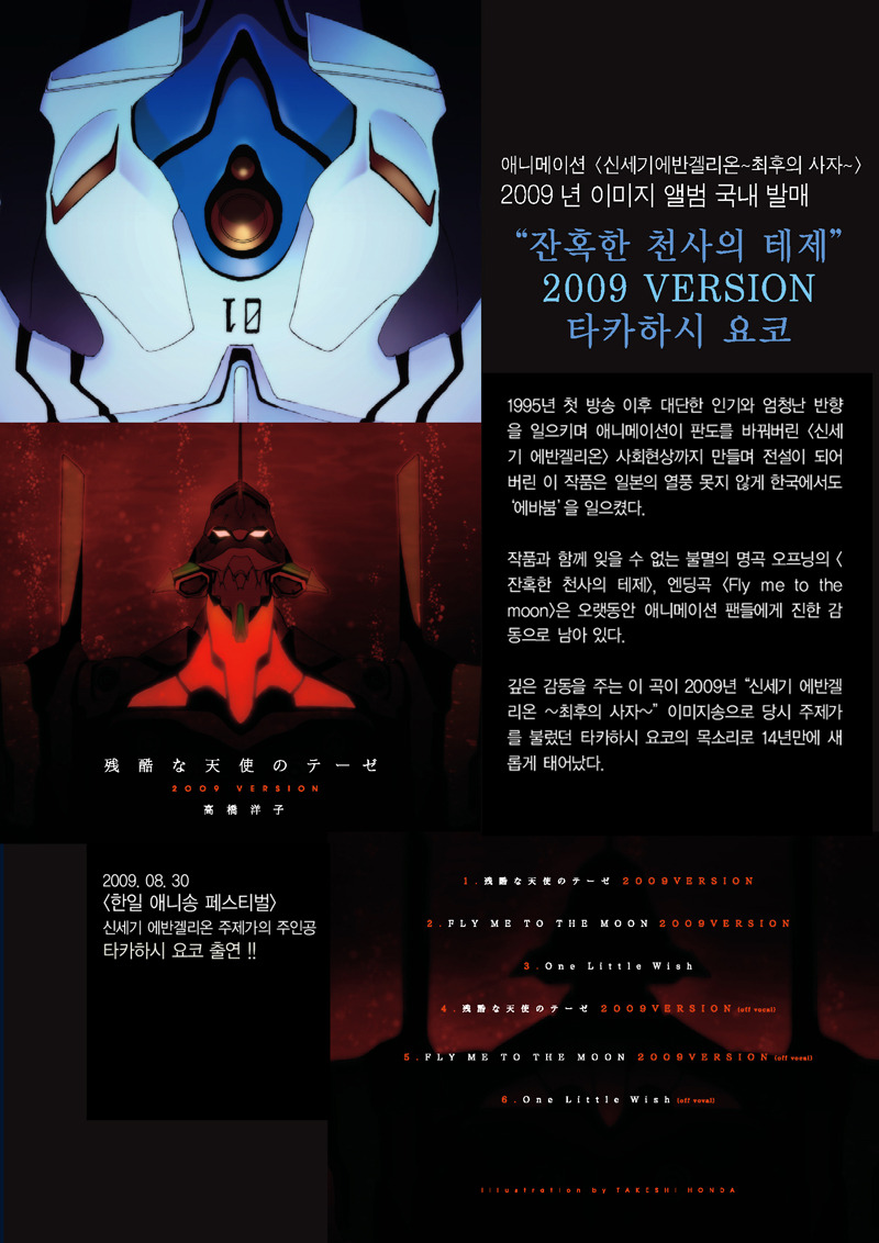 타카하시 요코는 오는 2009년 8월 30일 KBS홀에서 펼쳐지는 「한.일 애니송 페스티벌」에 일본 아티스트로 참여하게 되어 “잔혹한 천사의 테제”를 비롯한 그의 노래를 사랑해 준 한국팬들앞에 처음으로 공연하게 된다.