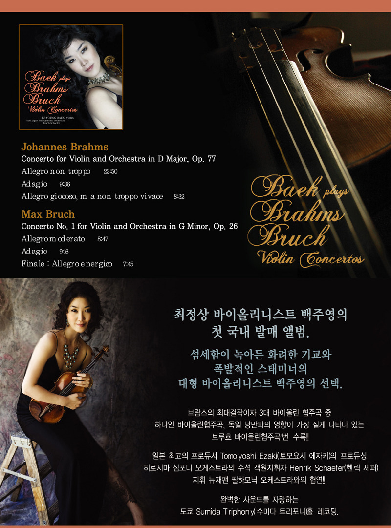 [CLASSIC](2009/9/24) 바이올리니스트 백주영 첫 국내앨범 [브람스 바이올린협주곡, 브루흐 바이올린 협주곡 1번]