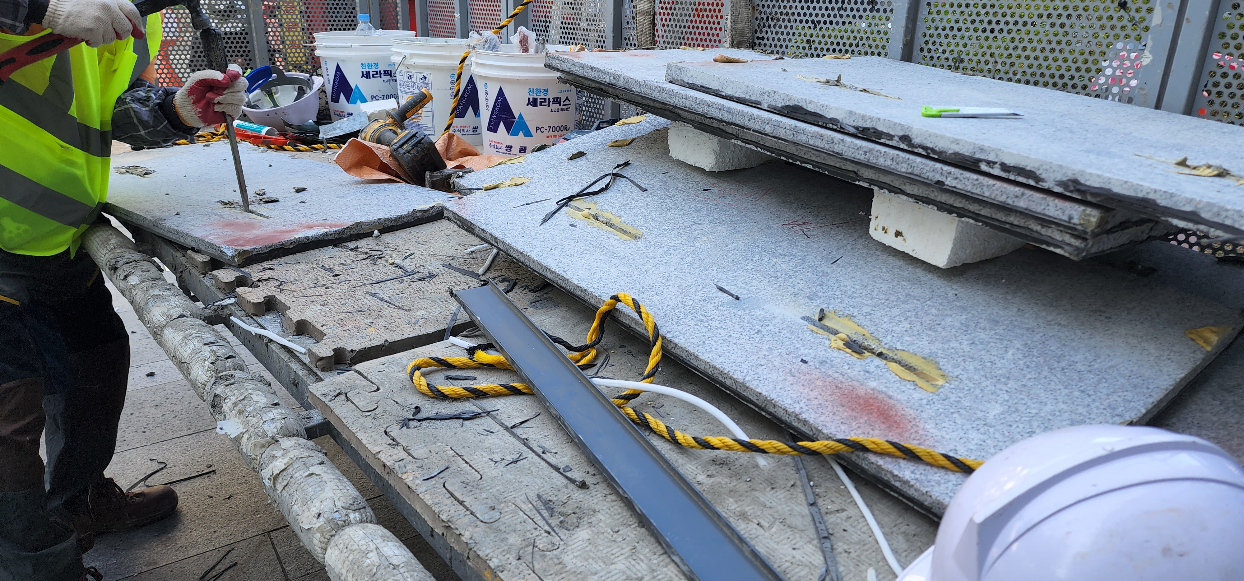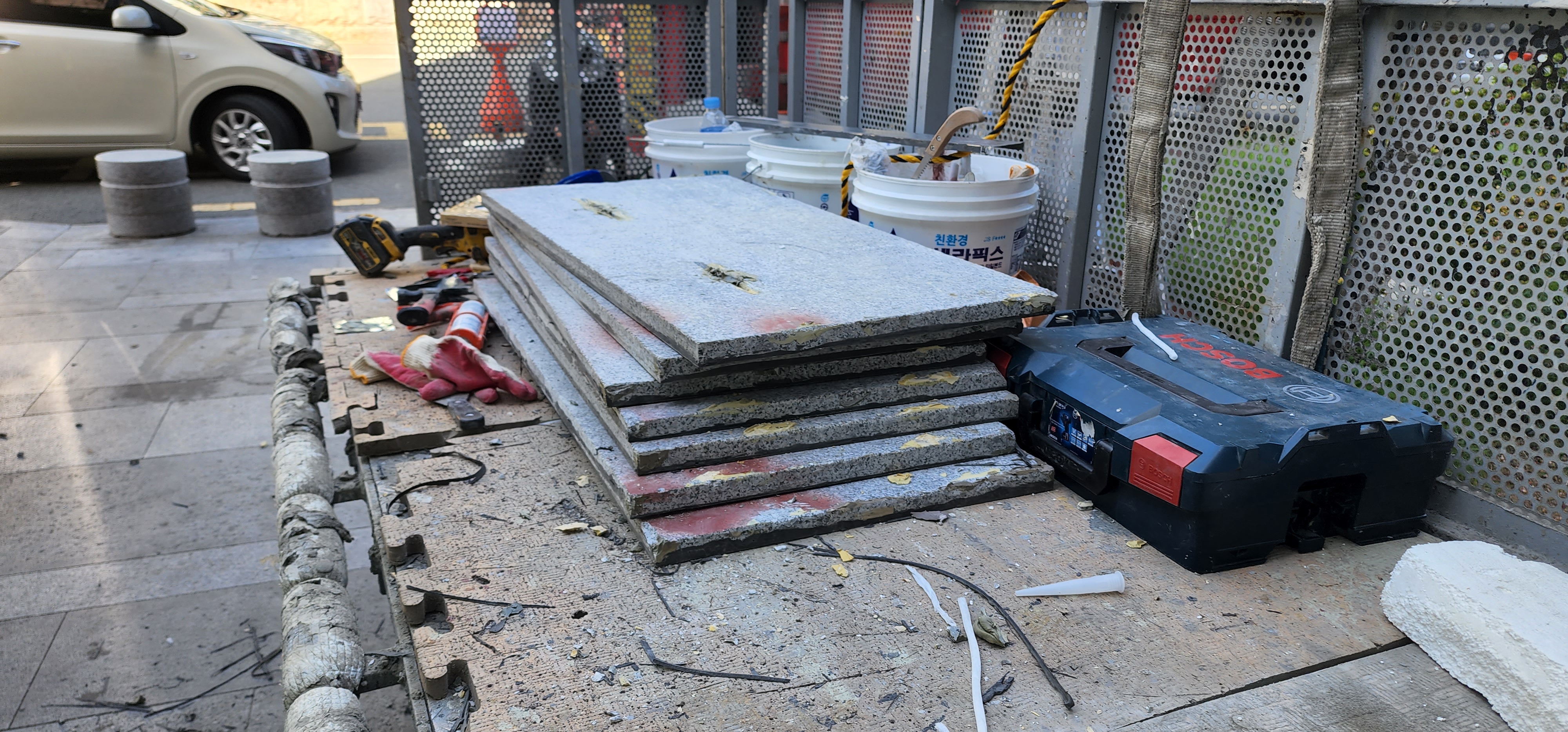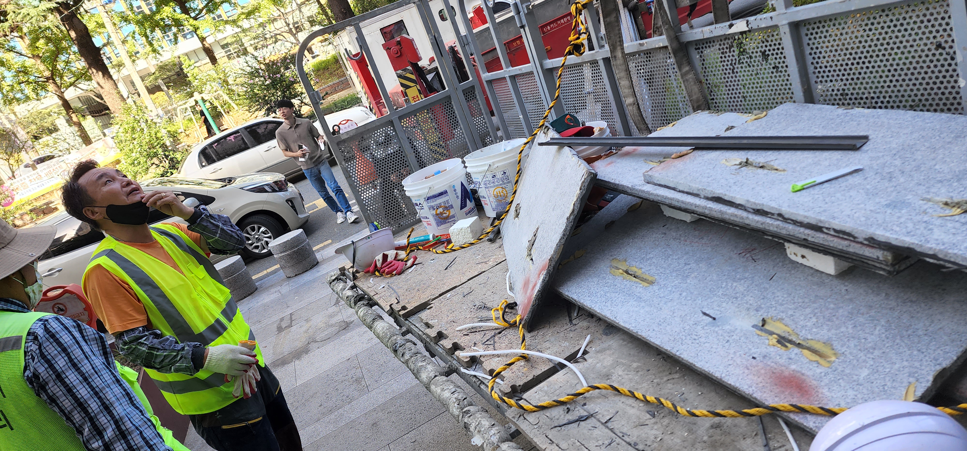 차량대리석파손 대물보혐처리 석공사 하자보수, 석공사