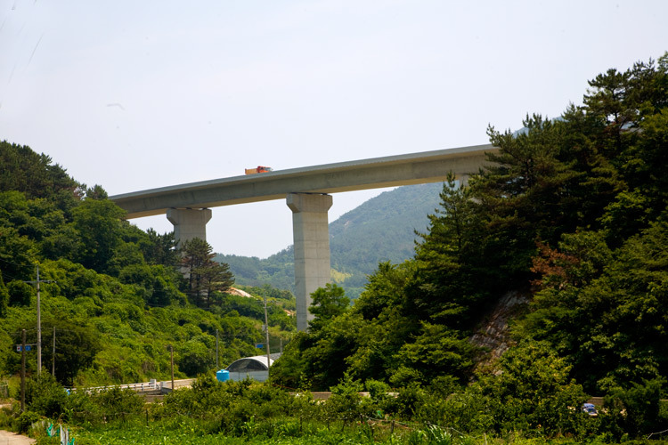 약 100m 가다보면 거가대교 접속도로의 한부분인 교각이 보인다. 교각 아래로 간다.