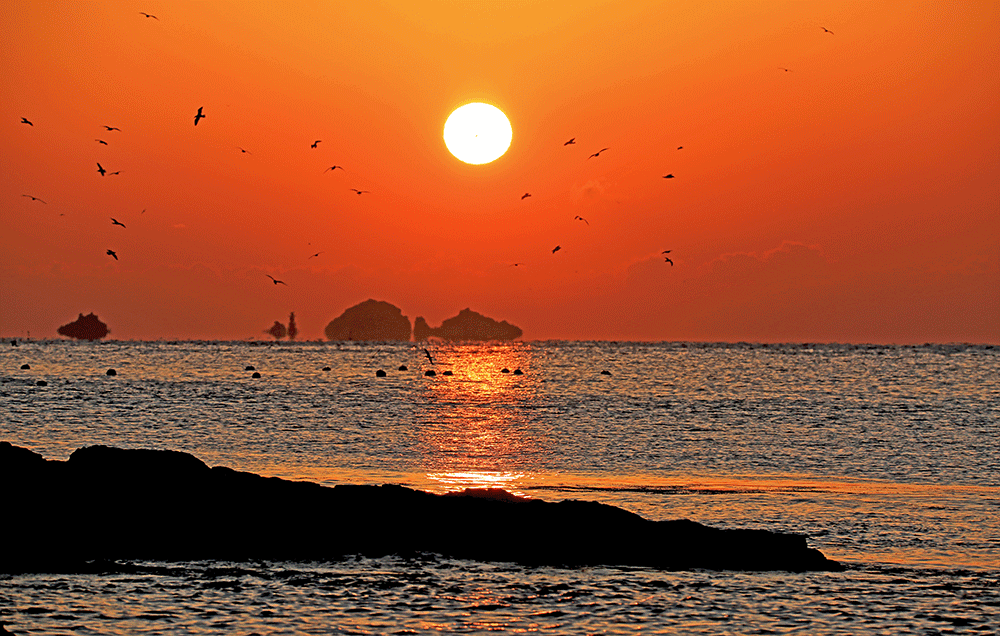 TIP: 일출 일몰 촬영요령 -일출: 일출장면은 10여초로 미리 준비되지 않으면 촬영을 못한다. F 8~11, 60/1이상, ISO 100. 삼각대 기본이나 삼각대가 없으면 감도 400정도로 한다. 렌즈는 400mm가 기본이나 풍경 위주로 할 때에는 200mm나, 24~70을 사용해도 된다. 해가 뜨고 난 후 바다의 빛산란을 찍어도 된다. -여명(黎明): 해가 뜨기 전30분경 하늘이 붉게 물드는 것을 말함인데 어떤 때는 일출보다 황홀하다. -일몰: 2012년 1월1일 일몰시간은 17:24분이다. 오후7시10분부터 촬영한다. 일몰촬영은 주로 주변에 풍경과 아울러 촬영한다. 역시 일몰시간은 10초 내외로 미리 준비를 한다. -석양(夕陽): 해가 지고 난 후 20분경에 나타나는데 환상적인 광경을 연출한다. 아름다운 경치나 주로 다리를 넣고 촬영한다. 거제는 가조도다리, 계룡산 통신대에서 바라본 거제만 전경 상세한 정보: 거제도이야기 카페지기 옥건수 010-4488-2280
