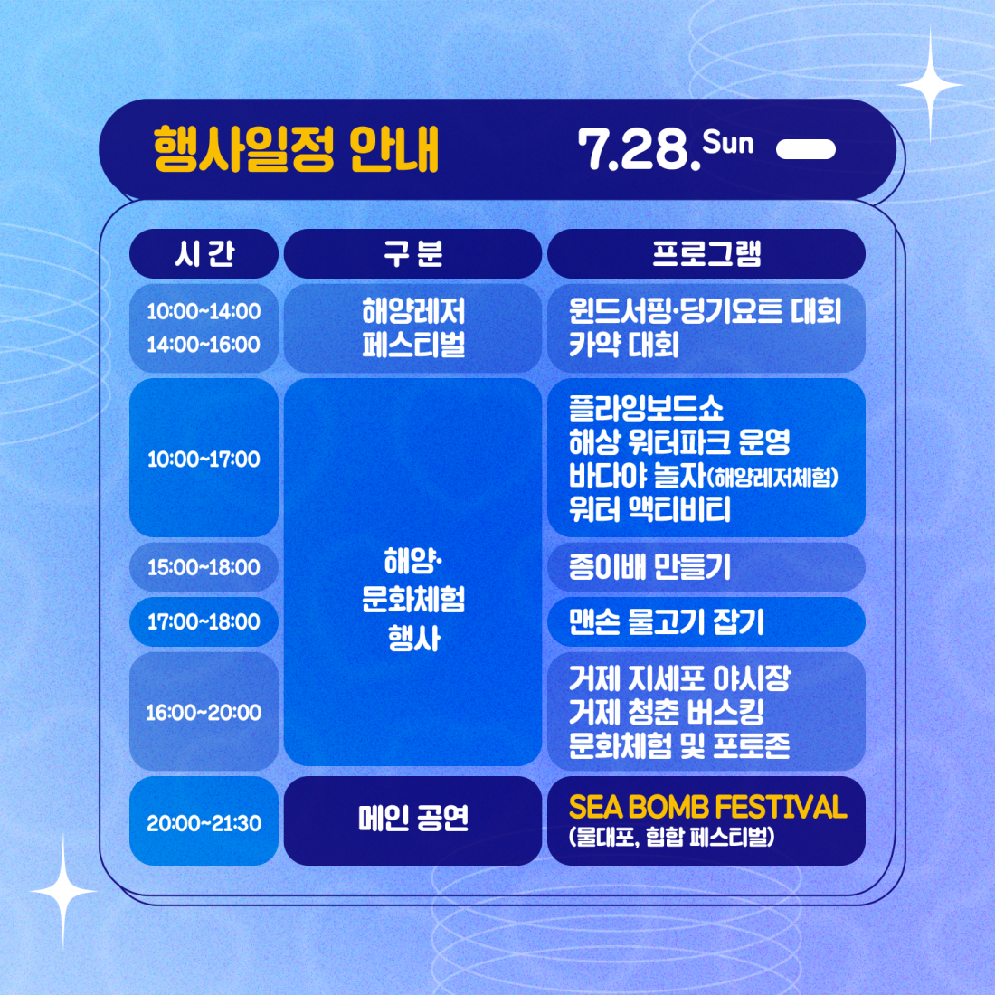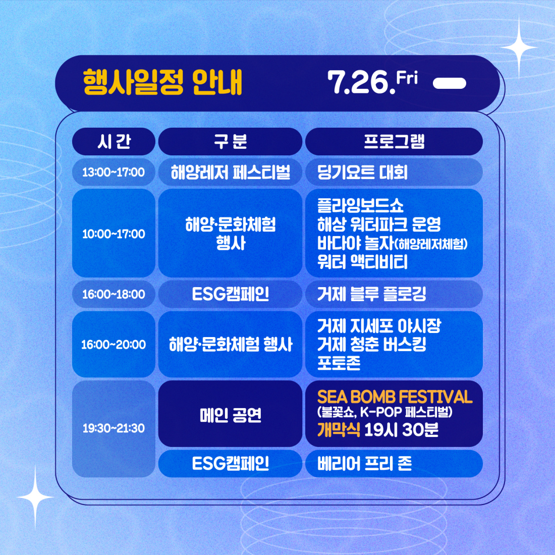 2024년 거제 바다로 세계로 작성자옥건수|작성시간24.07.23|조회수27 목록 댓글 0 글자크기 작게가 글자크기 크게가 다음검색 현재 게시글 추가 기능 열기 북마크 공유하기 신고 센터로 신고 댓글 댓글 0 댓글쓰기 댓글 리스트