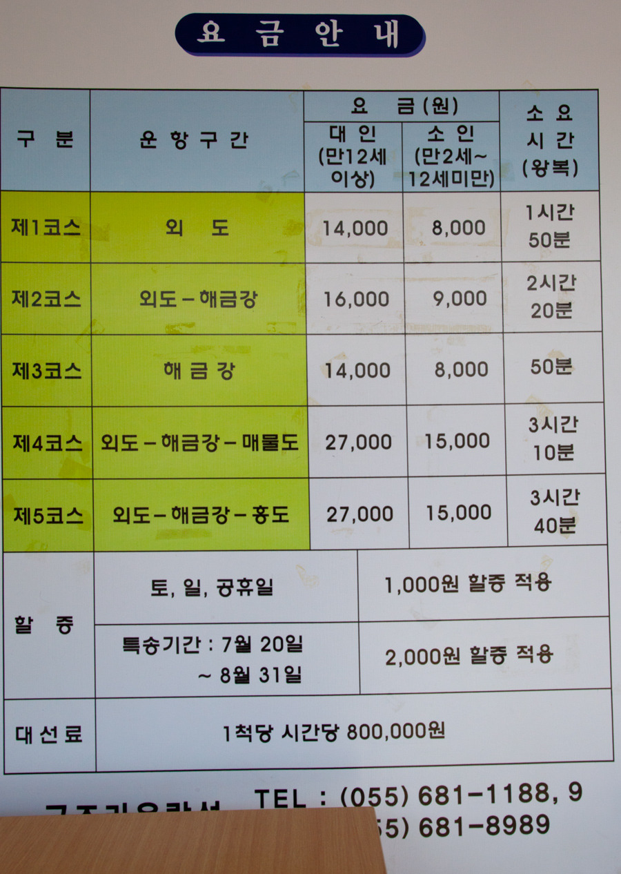2. 주변에 외도 해금강가는 유람선이 있고 내도가는 도선이 있다.