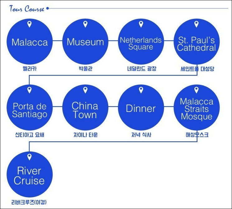 답사코스 | 한국-쿠알룸프르(6시간)→말라카(3시간)→더치 광장 → 스타더이스 → 말라카 그리스도 교회 → 말레이시아 유스 박물관 → 세인트 프란시스 자비에르 교회 → 말라카 세인트 폴 교회 → 말라카 술탄 궁전 → 말라카 산티아고 요새 → 말레이시아 건축 박물관 → 말라카 리버 크루즈 → 말라카 해양 박물관 → 타밍 사리 전망대 → 팔라완 워크 더치 광장 –쳉훈텡사원- |