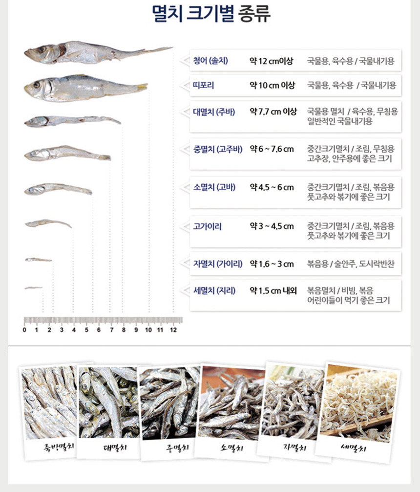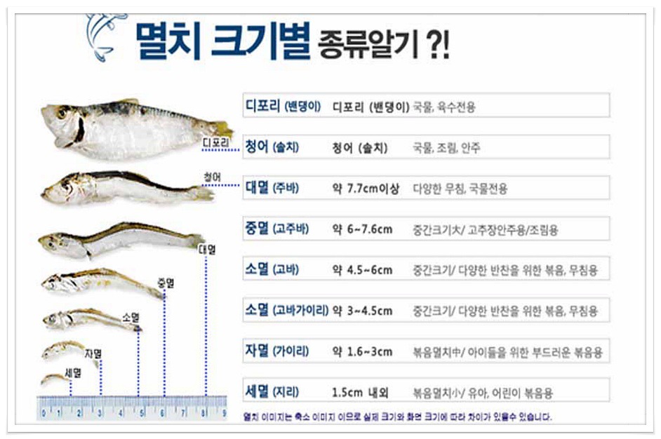 대멸 | 주바멸치 | 7.7이상 | 고급국물용, 무침용, 술안주 |