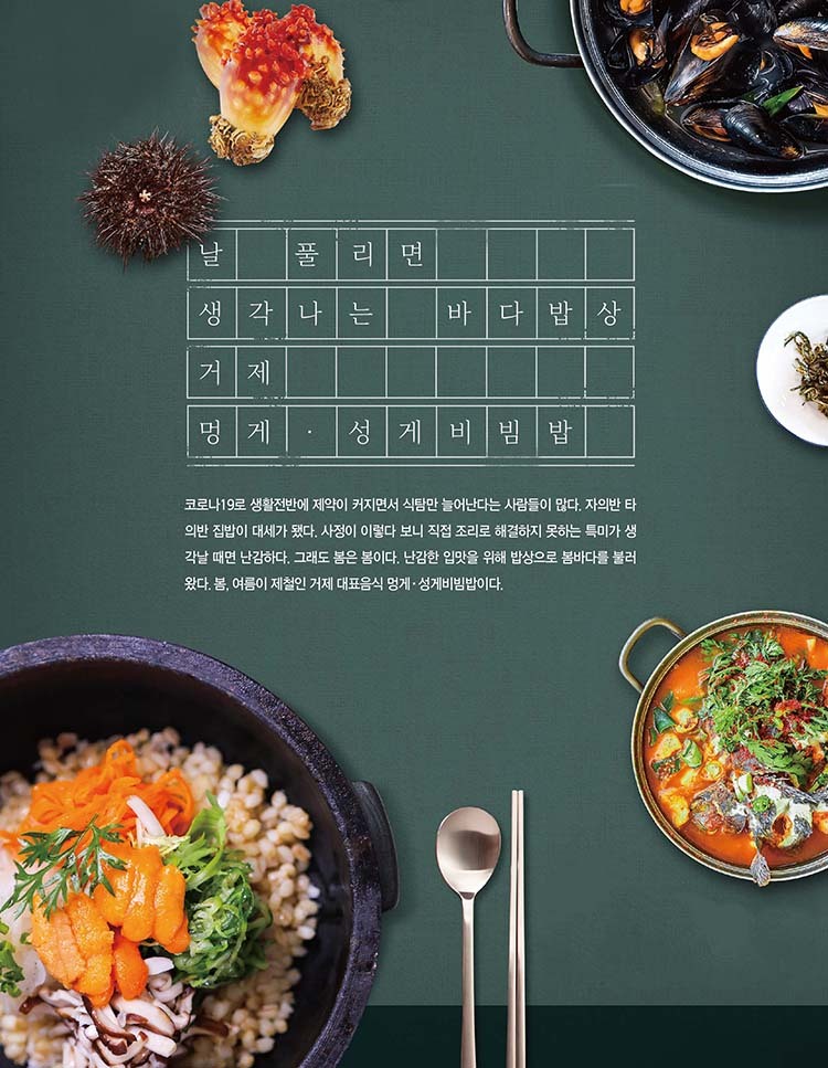 | [맛]날 풀리면 생각나는 바다밥상 거제 멍게·성게비빔밥 ‘바람의 언덕’ 바라보며 비빔밥 한상 거제 관광의 1번지인 바람의 언덕이 있는 도장포, 한 폭의 그림 같은 풍경으로 감탄을 자아내는 곳이다. 관광지로서 명성 못지않게 어촌으로서 분위기도 활기차다. 그곳에서 멍게·성게비빔밥을 맛보기로 했다. 30대에 밥장사를 시작해 팔순이 되도록 식당일을 놓지 못하는 김선이 주방장의 비빔밥이다. “뭘 찍는다고 그래? 특별한 비법이 있는 것도 아닌데. 그냥 밥이나 먹고 가.” 카메라를 들이대자 손사래를 치는 김 여사는 사장인 아들 백광호(52) 씨를 불러내 촬영거부 시위를 한다. 백 사장은 “있는 그대로 차려내면 된다”는 말로 어머니 허락을 받는다. “그냥 산지에서 먹는 거라 재료가 좋은 것뿐인데, 뭘.” 봄 햇살 따뜻하게 내리쬐는 야외식탁에 앉아 김 여사의 멍게·성게비빔밥 한상을 받았다. 바람의 언덕 풍차가 바라보이는 곳이어서 거제 특미의 맛을 더한다. 홍합탕으로 개운한 입가심 여덟 가지 밑반찬이 차려진다. 집밥을 마주한 듯하다. 화려한 꾸밈새가 없다. 비빔밥과 세트를 이루는 홍합탕이 그나마 밥집 분위기를 낸다. 유명 식당에서 멍게·성게비빔밥에 지리탕을 내는데, 여기서는 홍합탕을 낸단다. 비빔밥을 보면 이유를 안다고. “집집마다 비빔밥 스타일이 다른데요. 멍게살과 성게알에 김가루, 참기름만으로 비빔밥을 내는 게 보통인데, 우리 집은 야채비빔밥처럼 냅니다. 그러다보니 국물로는 무거운 지리탕보다 개운한 맛으로 먹는 홍합탕이 낫더라고요.” 과연 백 사장이 가져온 비빔밥은 흰쌀밥이 보이지 않을 정도로 덮은 멍게와 성게, 그리고 야채와 김가루가 한가득이다. 양념장인 초고추장도 이미 뿌려져 나온다. 손님 요청에 따라 양념장 없이 내기도 한다. “멍게와 성게는 바다향이 진해서 호불호가 확실한 편이죠. 기성세대는 좋아하고, 젊은층은 별로라 하더라고요. 특유의 바다 맛을 즐기시는 분들은 양념장 없이도 감칠맛을 느끼시는 것 같아요.” 숙성 거쳐 비빔밥으로, 해녀채취 성게 ‘귀한 몸’ 멍게는 양식, 성게는 거제 해녀들이 물질한 자연산을 쓴다. 양식 못하는 성게는 제철 아니면 맛보기 어려운 귀한 몸이다. 하지만 멍게가 양식이라고 자연산에 비해 맛이 떨어지지는 않다는 게 백 사장의 설명. 어차피 바다 속에서 자라기는 매한가지기는 하다. 봄부터 여름까지 한창 제철일 때는 막 건져 올린 생물을, 제철이 아닐 때는 냉동 보관했던 것을 숙성해 쓴다. 제철일 때도 살짝 얼려 이틀정도 냉장고에서 숙성하는 과정을 거쳐야 더 진한 맛을 낸단다. 백 사장의 얘기를 들으며, 알싸하고 달큰한 맛의 세계로 숟가락질 해간다. 특유의 바다향이 코끝을 자극한다. “우리는 보통 성게알이라고 하잖아요?그런데 사실은 알이 아니고 암수 구분되는 생식기예요.” 백 사장이 무심코 던지는 정보성 발언에, ‘헐~ 생식기?’ 숟가락질을 멈추고 비빔밥 그릇을 내려다본다. 이미 밥그릇은 바닥을 보이고 있다. 아는 맛이 더 무섭다. 멍게·성게비빔밥, 안 먹어봤으면 모를까 맛보고 나면 다시 생각날 수밖에 없는 중독성을 갖고 있다. “거제 오시면 꼭 맛보시고 가세요.” 백 사장이 바닷가에 왔으니 물고기 맛을 안 보고 갈 수는 없다면서, 우럭매운탕을 내온다. 큼지막한 우럭이 솥이 비좁아라 누웠다. 비린내를 가시게 하는 쑥갓이 듬뿍 얹혔다. 빨간 국물에 침을 꼴깍 삼킨다. 통통한 우럭살을 한 덩어리씩 건져내 푸지게 먹는다. 향 진한 멍게·성게비빔밥이 싫다던 손님들도 우럭매운탕 앞에서는 밥 한 그릇 뚝딱이다. 거기다 일일이 손으로 떠 넣은 수제비가 밀가루음식 마니아에게도 힘을 쓴다. 마지막 한 점까지 끝까지 먹어야 숟가락을 놓게 한다. “매운탕에 뭘 한 거냐?”고 묻자, “어머니 김 여사 손맛”이라며 웃는 백 사장. 꼭 써달라면서 멍게·성게비빔밥 자랑으로 마지막 인사를 대신한다. “성게는 단백질이 많고, 비타민과 철이 풍부해서 영양가가 높답니다. 비싸지만 안 먹을 수 없는 식재료지요. 멍게야 간 기능 향상에 좋고 피로회복, 노화방지에도 좋다고 소문나 있어서 제값을 충분히 하는 셈이고요. 채취하고 손질하고 보관 숙성까지 쉬운 재료들은 아니에요. 거제 오시면 꼭 한 번 맛보시고 가세요!” 취재협조 바람의언덕맛집 055)633-1404 |