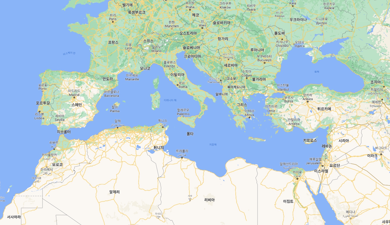 ◉ 남유럽에서 지중해에 접한 국가 및 지역