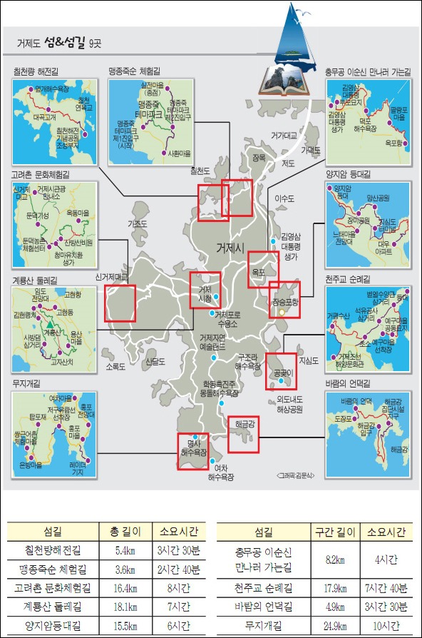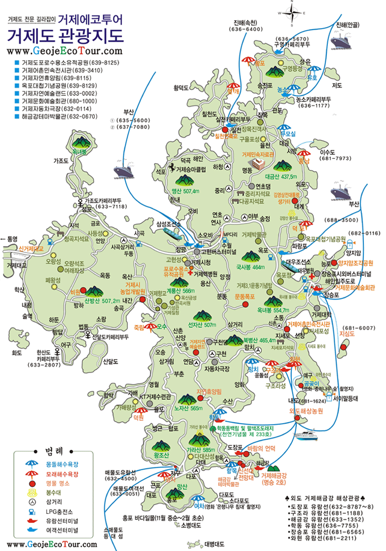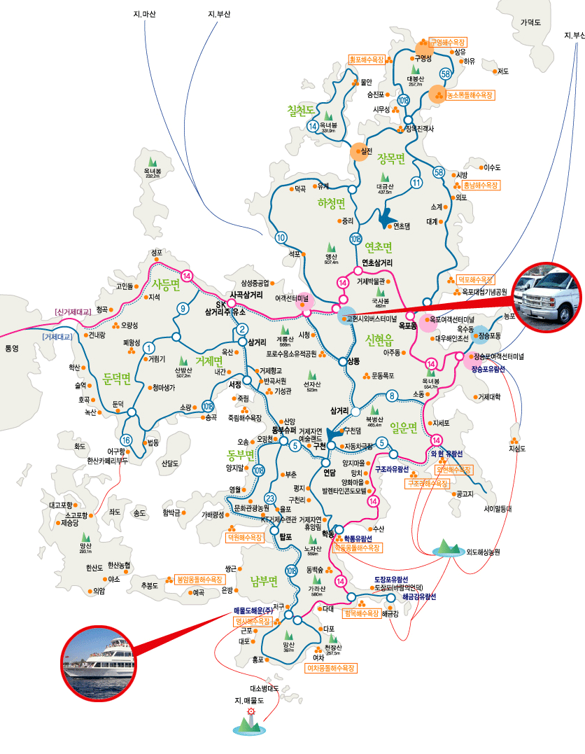 거제도 관광지도 및 거제 섬 & 섬길 지도