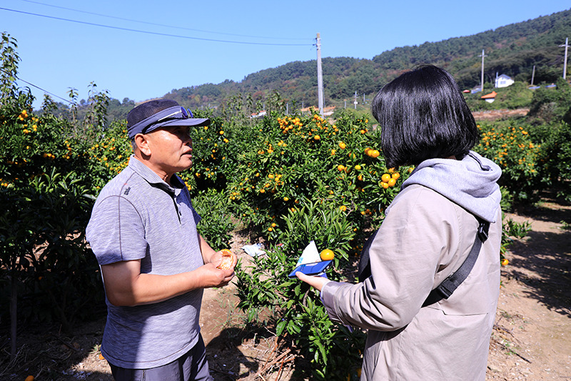 감귤은 다른 과일에 비해 식품적가치가 높아 비타민공급, 식이섬유, 유기산 공급이 풍부하며 비타민c가 다량 함유되어 있고, 구연산이 들어 있어 피로회복에 좋고, 산,알카리가 균형이 잡혀있어 피를 맑게하고 그리고 약 알카리성 체질을 유지한다. 그리고 비타민 P 함유되어 있어 모세관 혈관을 보강하여 고지형예방과 체중감소에도 효과 가 있다. 욕지도 도동 밀감단지 전경 인터뷰에 응해주신 이숙이 할머니와 경남공감, 배해귀기자 욕지도 밀감단지 총무 조광현씨 욕지도 밀감은 일반밀감보다 30~50% 비싸게 팔린다.