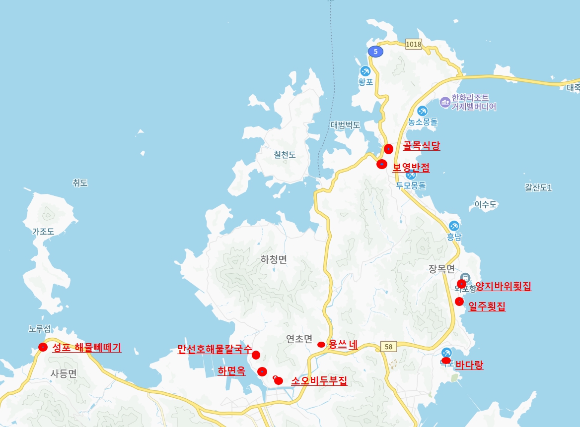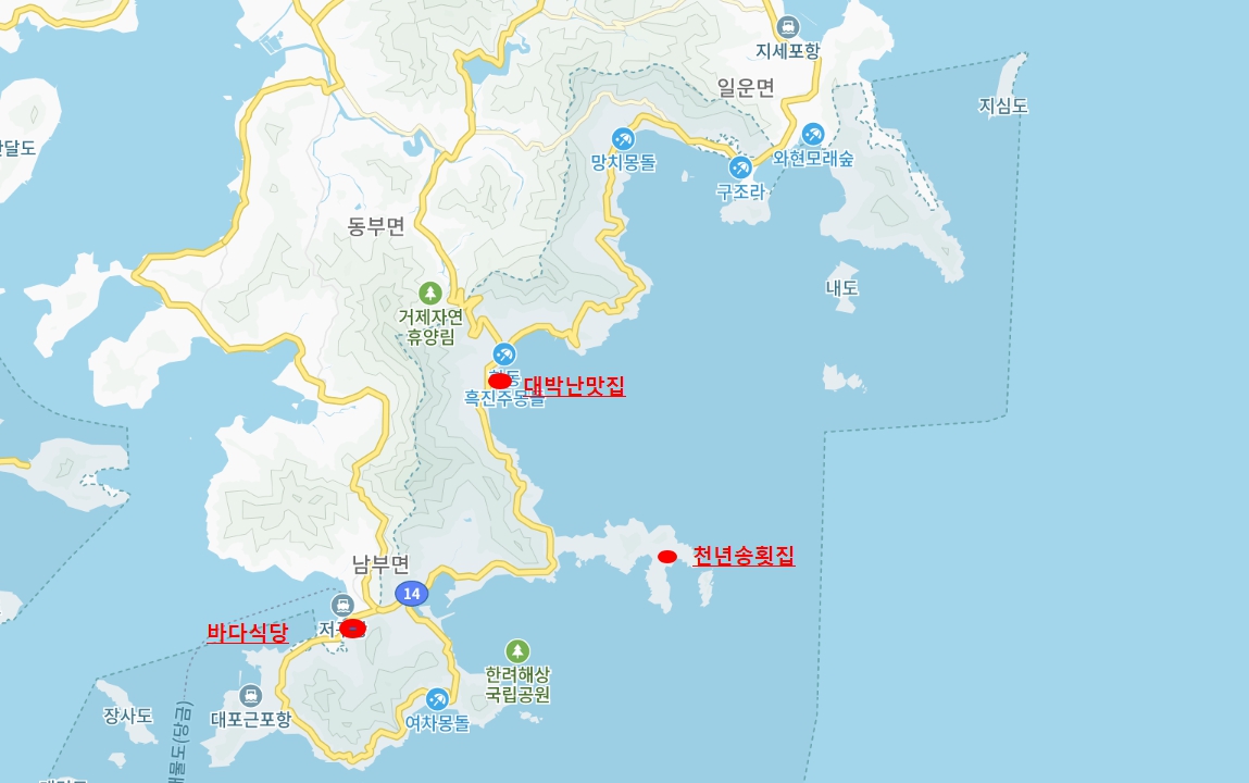 | 장승포,능포 | 그바다에 가면 | 능포로15길 5 | 055-681-5315 | 곤드레밥, 톳나물밥 12,000원/폐업 |