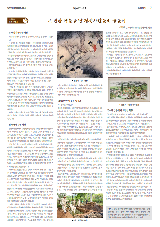 정선에서 여름은 물놀이와 함께 보냈습니다. 참깨(오얏)를 물에 던져 건져 올리는 놀이도 했고요. 물 바닥에 하얀 돌을 던지고 먼저 찾는 놀이 등 참 많은 물놀이가 있었습니다. 2025년 여름은 무척 덥습니다. 모두 지혜롭게 지내시기를 바랍니다.
