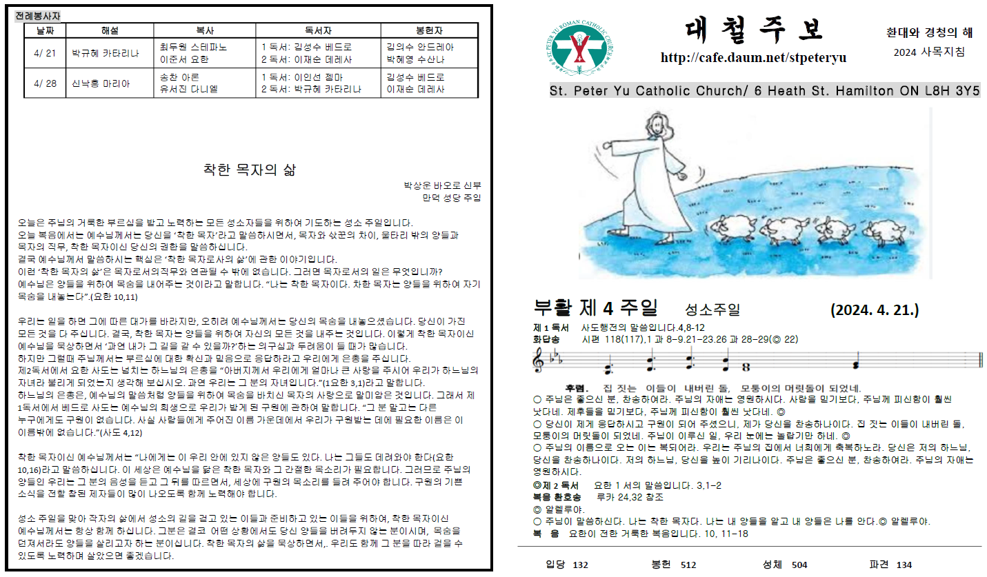 2024 17 부활 4주일 성소주일(4/21) 작성자CISCO|작성시간24.04.21|조회수181 목록 댓글 0 글자크기 작게가 글자크기 크게가 2024 17 부활제 4주일(성소주일).pdf1.01MB 첨부파일첨부된 파일이 3개 있습니다. png 파일 image.png 다운로드 png 파일 image.png 다운로드 pdf 파일 2024 17 부활제 4주일(성소주일).pdf 다운로드 다음검색 현재 게시글 추가 기능 열기 북마크 공유하기 신고 센터로 신고 댓글 댓글 0 댓글쓰기 답글쓰기 댓글 리스트