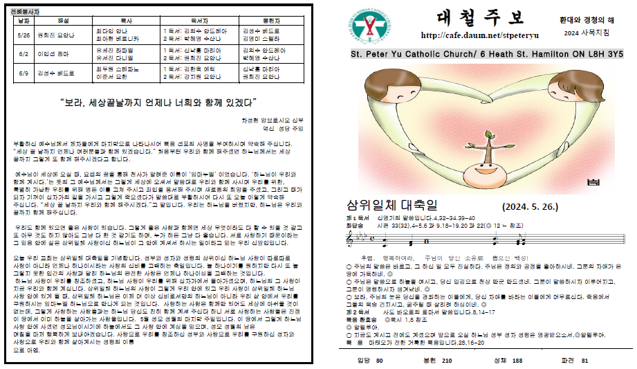 2024 22 삼위일체대축일(5/26) 작성자CISCO|작성시간24.05.25|조회수128 목록 댓글 0 글자크기 작게가 글자크기 크게가 2024 22 삼위일체대축일.pdf885.23KB 첨부파일첨부된 파일이 3개 있습니다. png 파일 image.png 다운로드 png 파일 image.png 다운로드 pdf 파일 2024 22 삼위일체대축일.pdf 다운로드 다음검색 현재 게시글 추가 기능 열기 북마크 공유하기 신고 센터로 신고 댓글 댓글 0 댓글쓰기 답글쓰기 댓글 리스트