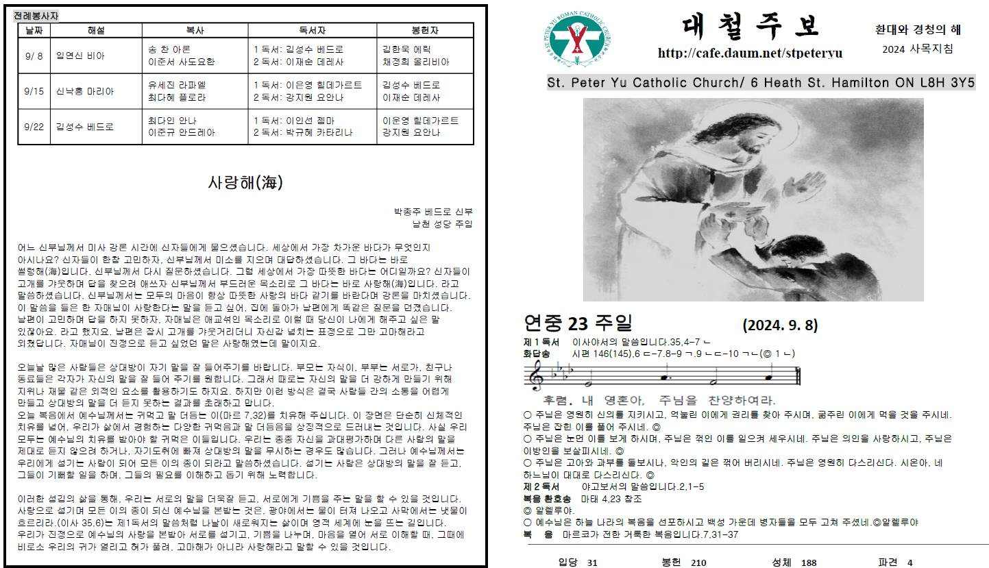 2024 37 연중 23주일 주보(9/8) 작성자CISCO|작성시간24.09.08|조회수196 목록 댓글 0 글자크기 작게가 글자크기 크게가 2024 37 연중 23 주일.pdf1015.39KB 첨부파일첨부된 파일이 3개 있습니다. png 파일 image.png 다운로드 png 파일 image.png 다운로드 pdf 파일 2024 37 연중 23 주일.pdf 다운로드 다음검색 현재 게시글 추가 기능 열기 북마크 공유하기 신고 센터로 신고 댓글 댓글 0 댓글쓰기 답글쓰기 댓글 리스트