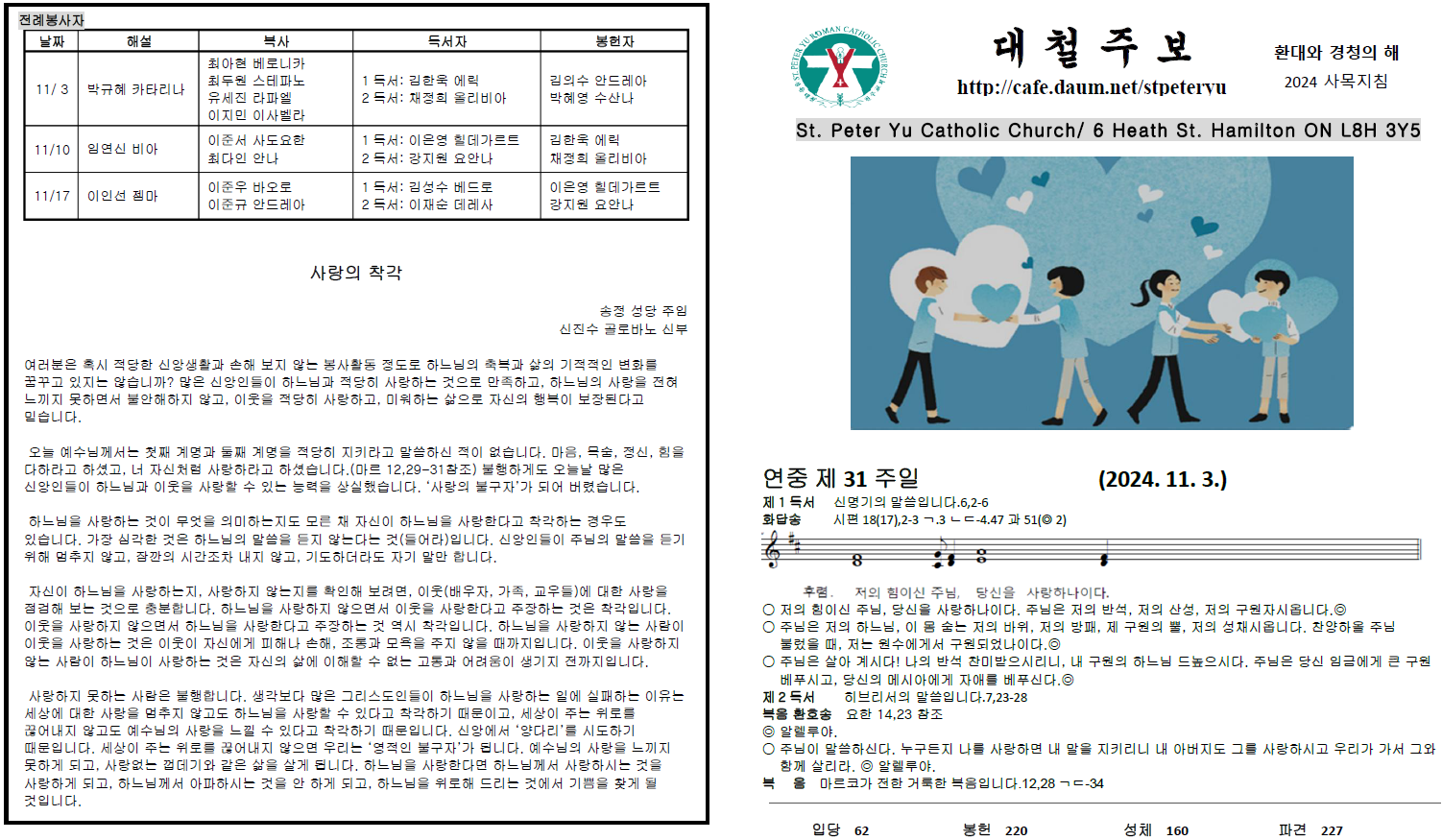 2024 45 연중 31주일 주보(11/3) 작성자CISCO|작성시간24.11.03|조회수220 목록 댓글 0 글자크기 작게가 글자크기 크게가 2024 45 연중 31주일.pdf1.03MB 첨부파일첨부된 파일이 3개 있습니다. png 파일 image.png 다운로드 png 파일 image.png 다운로드 pdf 파일 2024 45 연중 31주일.pdf 다운로드 다음검색 현재 게시글 추가 기능 열기 북마크 공유하기 신고 센터로 신고 댓글 댓글 0 댓글쓰기 답글쓰기 댓글 리스트