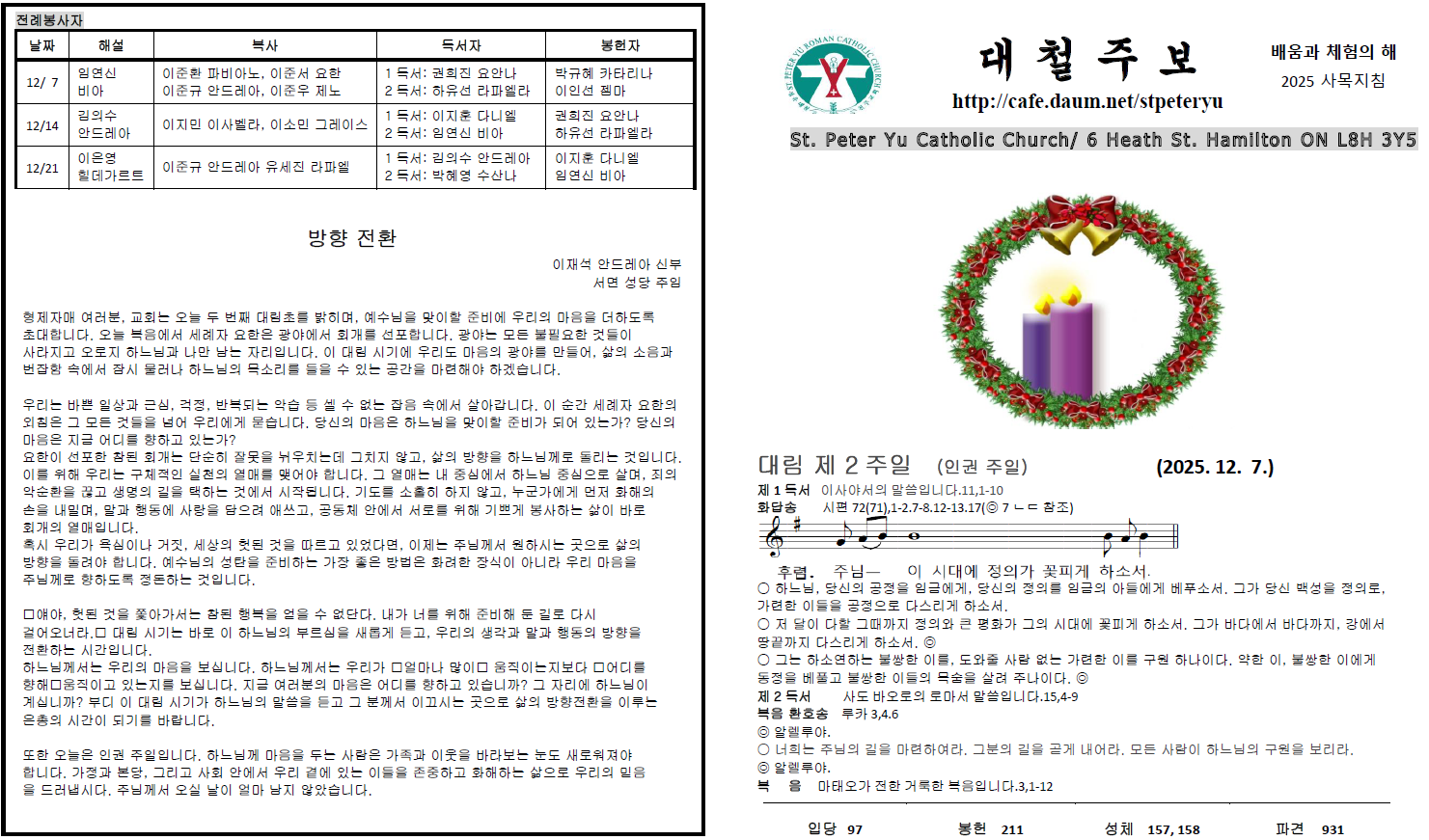 2025 50 대림 2주일 주보(12/7) 작성자CISCO|작성시간25.12.07|조회수85 목록 댓글 0 글자크기 작게가 글자크기 크게가 2025 50 대림2주일.pdf402.25KB 첨부파일첨부된 파일이 3개 있습니다. png 파일 image.png 다운로드 png 파일 image.png 다운로드 pdf 파일 2025 50 대림2주일.pdf 다운로드 다음검색 현재 게시글 추가 기능 열기 북마크 공유하기 신고 센터로 신고 댓글 댓글 0 댓글쓰기 답글쓰기 댓글 리스트