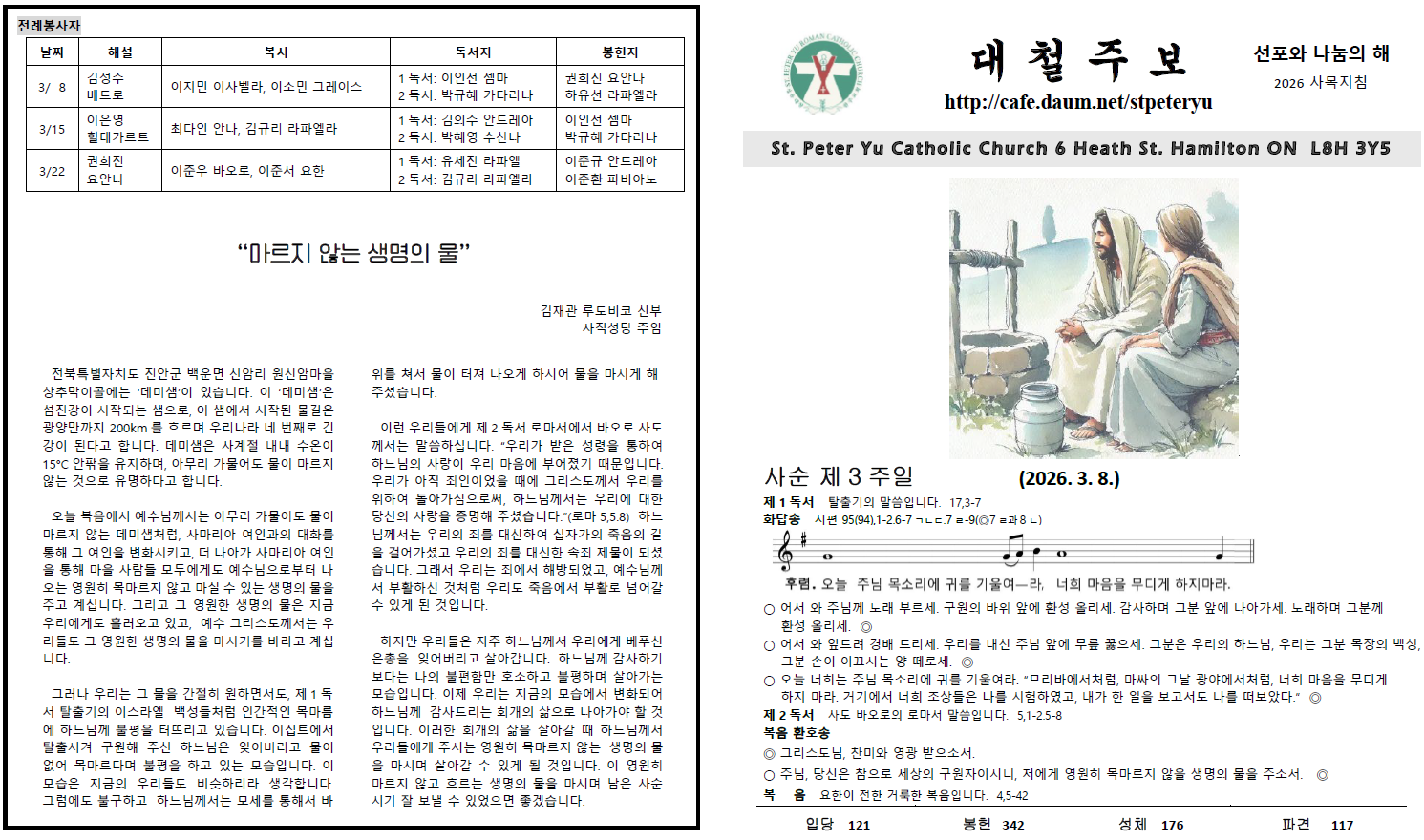 2026 11 사순 제 3주일 (3/8) 작성자CISCO|작성시간26.03.08|조회수117 목록 댓글 0 글자크기 작게가 글자크기 크게가 2026 사순 제3주일(3-8).pdf585.38KB 첨부파일첨부된 파일이 3개 있습니다. png 파일 image.png 다운로드 png 파일 image.png 다운로드 pdf 파일 2026 사순 제3주일(3-8).pdf 다운로드 다음검색 현재 게시글 추가 기능 열기 북마크 공유하기 신고 센터로 신고 댓글 댓글 0 댓글쓰기 답글쓰기 댓글 리스트