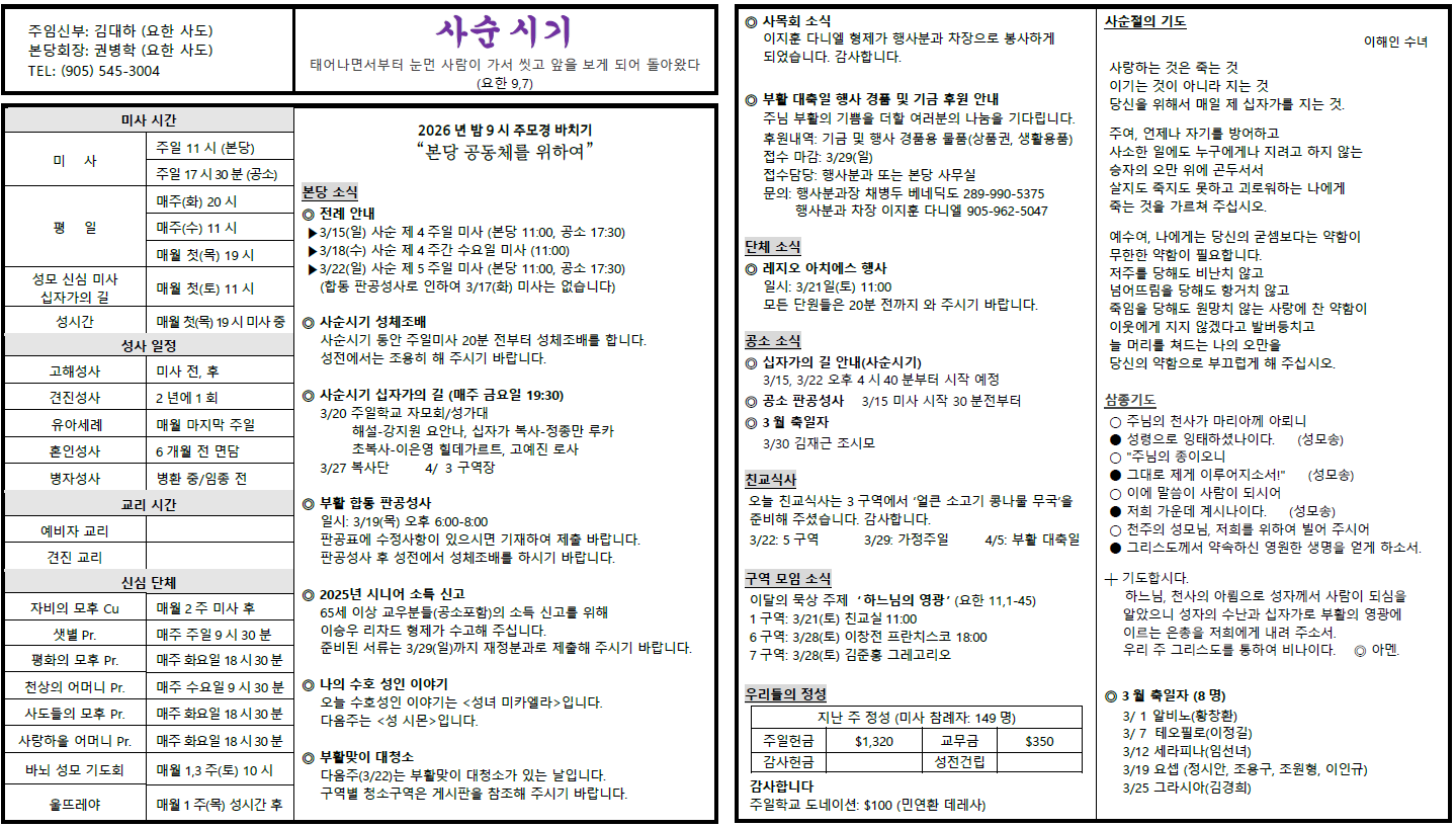 2026 12 사순 4주일(3/15) 작성자CISCO|작성시간26.03.22|조회수25 목록 댓글 0 글자크기 작게가 글자크기 크게가 2026 사순 제4주일(3-15) (1).pdf576.93KB 첨부파일첨부된 파일이 3개 있습니다. png 파일 image.png 다운로드 png 파일 image.png 다운로드 pdf 파일 2026 사순 제4주일(3-15) (1).pdf 다운로드 다음검색 현재 게시글 추가 기능 열기 북마크 공유하기 신고 센터로 신고 댓글 댓글 0 댓글쓰기 답글쓰기 댓글 리스트